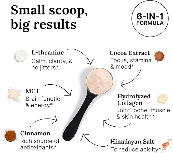 Elevate your daily coffee ritual with The Good Stuff™ Focus Blend—a premium, mocha-flavored power-up designed to transform your regular brew into a wellness-boosting, brain-energizing elixir. This thoughtfully crafted blend combines L-theanine, cocoa (theobromine), collagen, MCT oil powder, cinnamon, and Himalayan pink salt to help deliver smooth, sustained energy, enhanced focus, and skin-to-joint support—all without added sugar or the dreaded caffeine crash.